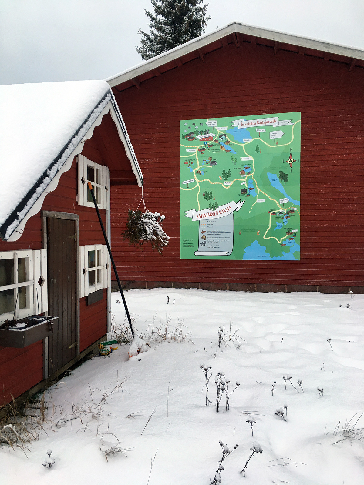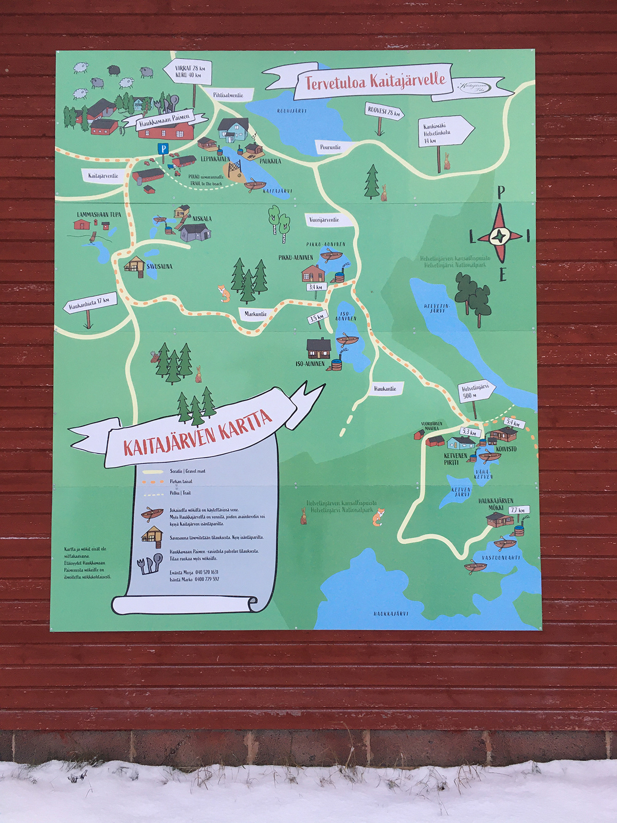 Kaitajärven Tilan vuokramökit sijoittuvat Helvetinjärven kansallispuiston takaiseen erämaahan ja kaukaisimmat mökit ovat noin kahdeksan kilometrin päässä tilan ravintolarakennuksesta. Kaitajärven Tila tarvitsi kartan, jolla asiakkaat voitiin visuaalisesti ja innostavasti ohjata oikeille mökeilleen.